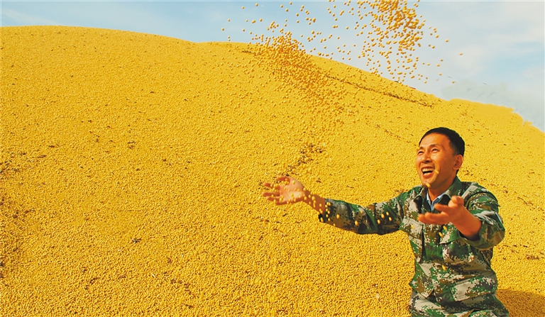 “农牧场4.8万亩大豆平均亩产在400斤左右,其中六队九号地400亩达到亩产576.5斤,创建场以来的新高点。”大兴安岭集团甘河农牧场公司统管队党支部书记、队长潘宇喜形于色。