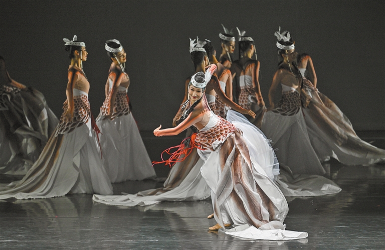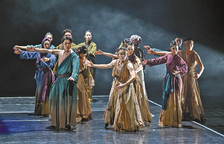 舞台上,舞者们身姿绰约,展现草原风情,绘就北疆和谐画卷。舞蹈诗剧《敕勒川》围绕守望相助、民族团结的主题,从人、史、自然的维度生动展现敕勒川草原的壮美风光和民俗风情,还原各民族交往交流交融的场景。