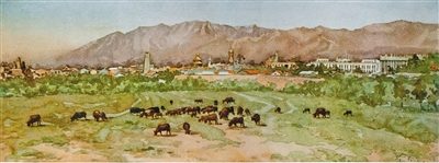 云希望的水彩画大多也是写生的产物或是在写生基础上的创作。他用开阔的视野、写实的语言、明朗的画面表现了特定时空下北疆大地的生动气象。他特别善于捕捉内蒙古高原瞬息万变的天气变化所带来的云层和阳光的变化,并借此营造画面氛围,强化作品主题。云希望是妥木斯的学生,他继承了老师关于“抒情的内蒙古与内蒙古的抒情”的艺术思想,着意在作品营造一种意境美或诗意美。其代表作《高原牧歌》即是一曲视觉的长调,面对作品,我们能感受到草原长调那悠扬辽阔、抒情动人的旋律;《冬日印象》如一首边塞诗,在萧瑟的冬日景观中营造出朦胧的意境;《逝去的风景》表现的是草原上一处废弃的圐圙,在白雪和月色的映衬下,弥漫着浓浓的诗意;《月光曲》描绘的是夜晚羊圈里的羊群,在朴素的生活场景中发掘出诗意美……凡此种种,都说明云希望在刻意追求一种抒情和诗意,这是他的审美态度和审美选择,由此构成了他水彩画的审美品格。