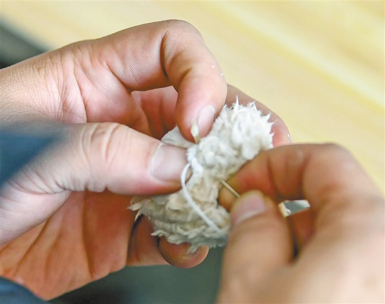 “别看这是个小物件,一个成品要经历画样剪样、缝纫封边、填充棉花、手工封口等十几道工序,而且很多地方需要手工缝制,要很细致才能做好。看到亲手制作的文创产品,能够得到这么多人的喜爱,我们干劲儿十足,成就感满满!”付俊英说。