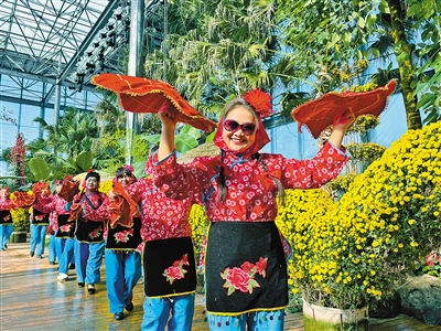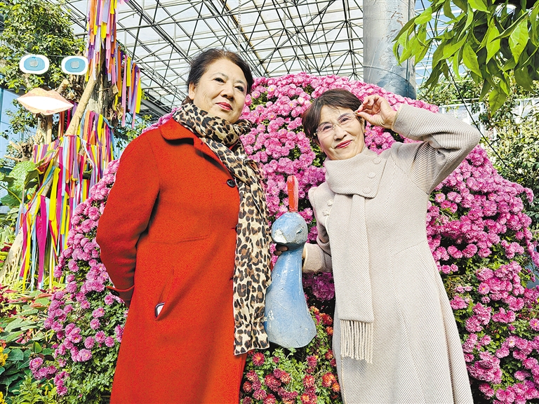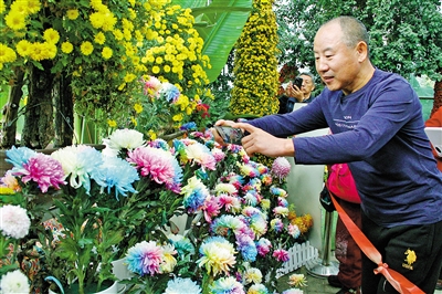 深秋,五彩斑斓的菊花盛放于呼和浩特市赛罕区现代农业园,市民游客欣赏花朵、打卡拍照,露出灿烂笑容,感受生活中的别样色彩与欢乐。