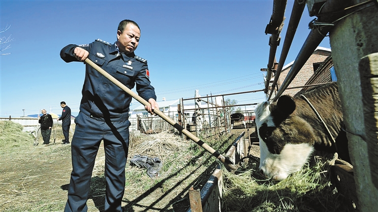 新巴尔虎左旗第二边境管理大队呼和哈达边境派出所民警走访牧户,为牧民提供帮助。