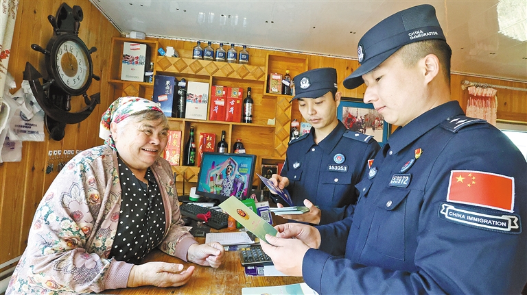 额尔古纳边境管理大队室韦边境派出所民警走访旅游民宿经营户。