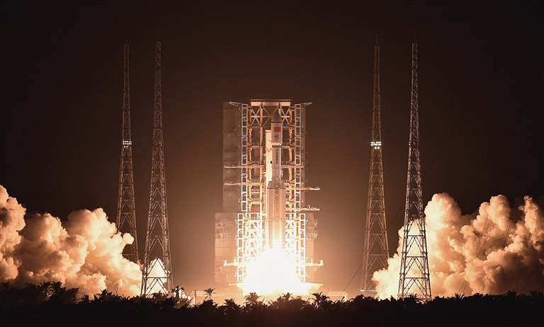 十一月十五日二十三时十三分,搭载天舟八号货运飞船的长征七号遥九运载火箭,在我国文昌航天发射场点火发射。 新华社发