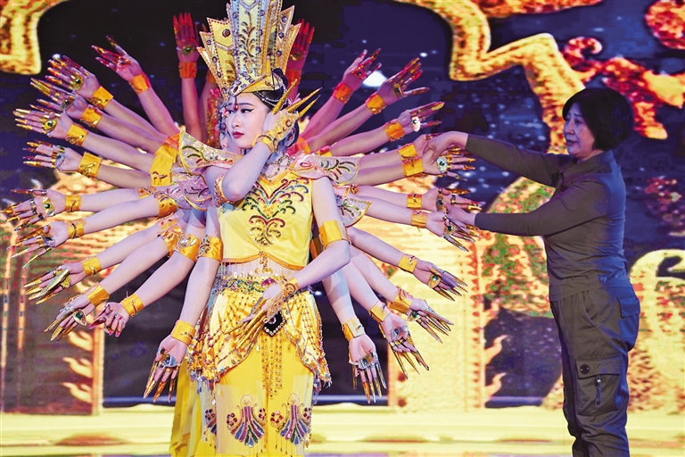 1月23日,在北京通州区台湖镇,北京心灵之声残疾人艺术团的听障演员在团长穆剑志指导下排练经典舞蹈《千手观音》。为迎接申遗成功后的首个春节,北京心灵之声残疾人艺术团紧张排练,为即将到来的通州“村晚”、园博园庙会游园等系列文化演出活动积极准备。新华社记者 潘旭 摄