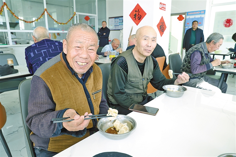“今天中午要吃饺子喽!”“我们快点走吧。”中午11时,养老服务中心的老人或手持拐杖,步履蹒跚;或相互搀扶,笑语盈盈,满心欢喜地走进餐厅,准备享用美味可口的午餐。