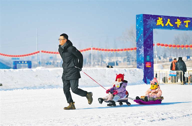 1月30日,市民在呼和浩特大黑河“花海之约”冰雪主题乐园畅玩。本报记者 孟和朝鲁 摄