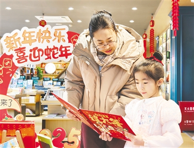2月1日,小读者和妈妈在巴彦淖尔市新华书店阅读。春节期间,内蒙古各地新华书店组织了丰富多彩的阅读推广活动,为市民带来一场可读、可赏、可逛的书香文化盛宴。本报记者 陈杨 摄