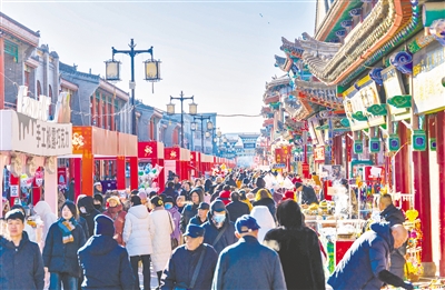 2月4日,呼和浩特新春文化庙会现场人头攒动。据了解,2025年春节内蒙古以“欢欢喜喜过大年”为主题,开展各类文旅活动417项。春节假期前7天,全区接待国内游客2733万人次,其中接待一日游游客1677万人次,接待过夜游游客1056万人次。本报记者 王磊 摄