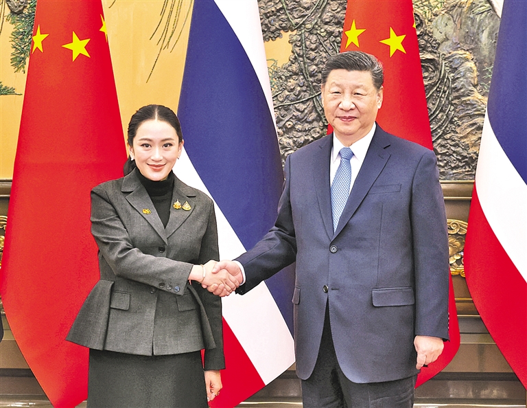 佩通坦表示,很高兴在“泰中友谊金色50年”之际访华。■下转第3版 ■上接第1版 50年来,泰中关系经历风雨,始终守望相助、共同发展,始终相互信任、尊重彼此核心利益,建立了特殊的友好合作关系。泰方坚定奉行一个中国政策,期待同中方一道,加强高层交往,密切互联互通、经贸、农业等领域合作,促进人文交流、民心相通,开启共享和平、共同繁荣的下一个50年,造福子孙后代。泰方愿同中方和其他邻国加强执法合作,采取坚决有效措施,打击网赌电诈等跨境犯罪。中国在国际事务中始终发挥负责任大国作用,坚定维护发展中国家利益,泰方愿同中方加强协调配合,共同应对全球性挑战。
