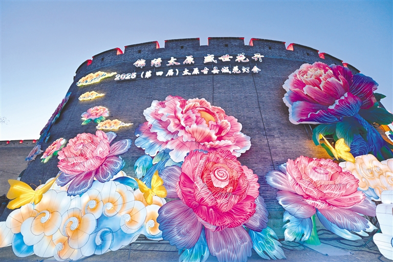 太原市晋源区太原古县城花灯会一角(2月5日摄)。新春伊始,在太原市晋源区太原古县城举办的2025太原古县城花灯会上,各类花灯流光溢彩、璀璨夺目,吸引游人前来观赏。新华社记者 詹彦 摄