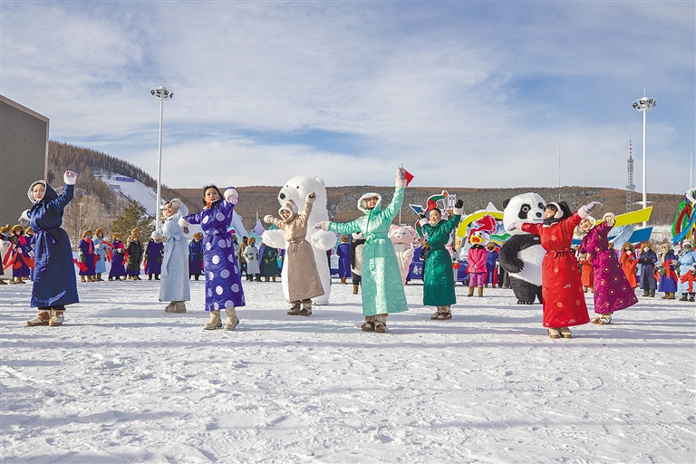 每天上午,在阿尔市街区主干道上,身着童话服饰的舞者们跟随花车翩翩起舞,仿佛雪地里的精灵,吸引着无数路人纷纷驻足围观。童话叮当车和马车巡游载着游客穿梭于大街小巷,独特的自然景观和热情豪爽的待客之道,让这座边境小城在寒冷时节依然“热气腾腾”。