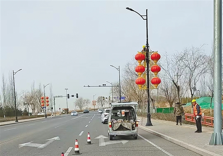 “年前和大家一起挂的灯笼为节日添了彩、增了色,给老百姓带去了欢乐,满满的自豪感油然而生。”看着眼前一整条街的大红灯笼,市文至滨滨文化传媒有限责任公司劳务队负责人乔军欣慰地笑了。