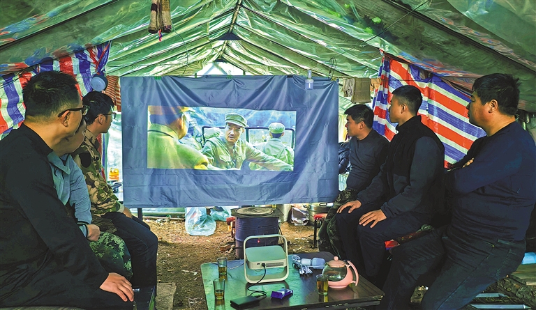 职工们通过工棚“影院”既能看新闻了解国家大事,还可以观看经典影片、学习政策理论知识和专业技术知识,提升自己的政治素养与专业水平,丰富的精神文化滋养让职工在深山里也能紧跟时代步伐、提升自我。
