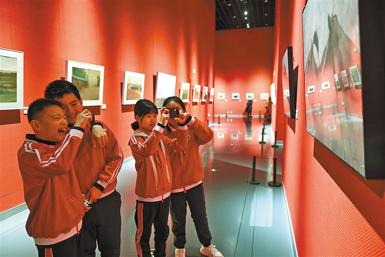 内蒙古美术馆中,艺术的气息扑面而来,孩子们目不转睛地欣赏着一幅幅精美的画作。“这幅画的色彩好漂亮,好像把我带入了一个梦幻世界。”冯恺勃认真地欣赏着画作说道。家长们陪着孩子,一边欣赏,一边交流。家长冯文成说:“让孩子接触艺术,能提高他们的审美,丰富内心世界。”