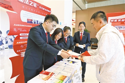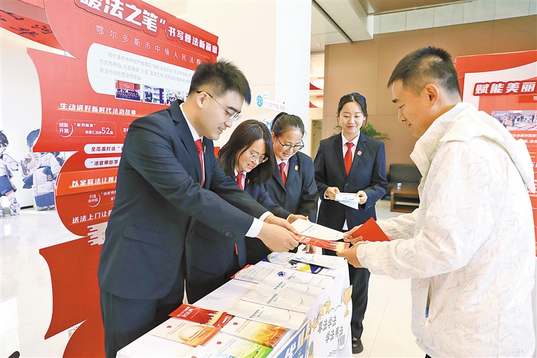日前,鄂尔多斯市中级人民法院组织开展了民法典普法宣传活动,干警们通过发放普法资料、现场解答群众法律咨询、讲解典型案例等方式传播法治理念、弘扬法治精神。本报记者 王皓 摄