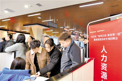 连日来,为促进就业,内蒙古各地迅速行动,开展多项就业服务活动,暖民心、稳就业、促发展。图为求职者与招聘企业沟通了解岗位信息。本报记者 杨林枝 摄