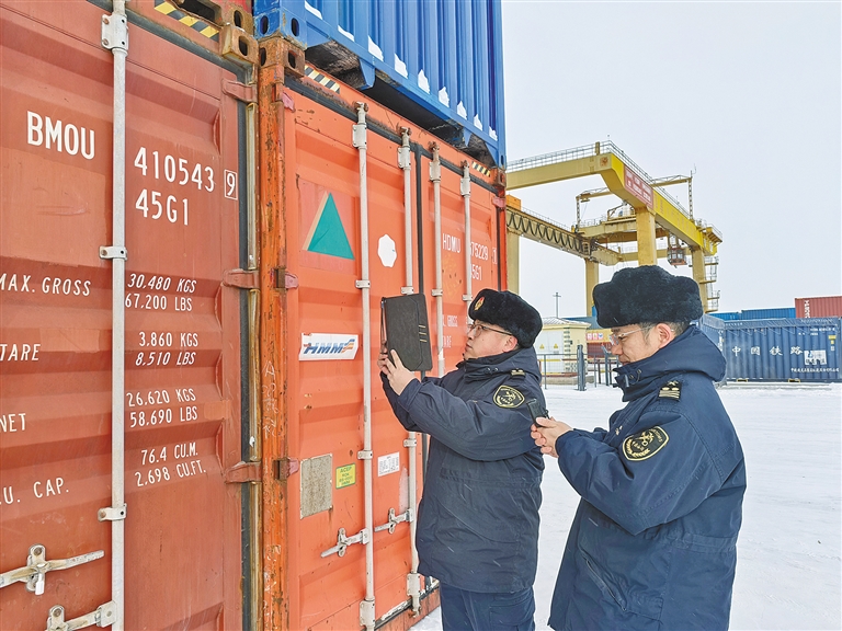 在赤峰保税物流中心,货物入区查验、通关放行和国际商品派送有条不紊。2024年,赤峰保税物流中心实现进出口贸易额11.9亿元,同比增长106.7%,位列自治区5个保税物流中心首位。