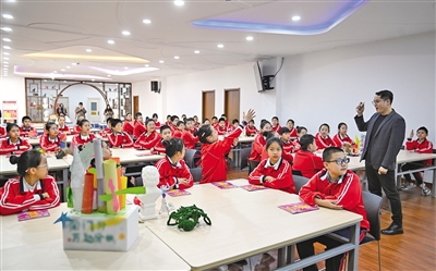 2月27日,内蒙古艺术学院雕塑系博士陆刚在向小学生们讲述雕塑艺术的历史。呼和浩特市教育局围绕青少年成长需求,联合呼和浩特雕塑艺术馆、内蒙古艺术学院精心打造涵盖小学至高中各学段的雕塑课,全方位激发学生的艺术潜能。 本报记者 王磊 摄