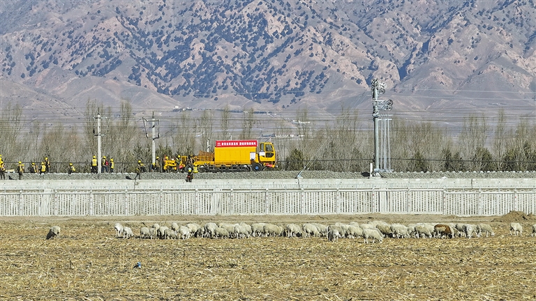 连日来,包银(包头至银川)高铁内蒙古段包头至临河间铺轨施工正在紧张进行。建设者们克服铺轨环境温度低、轨道精调技术要求高、工期紧迫等挑战,保证了铺轨施工顺利进行。