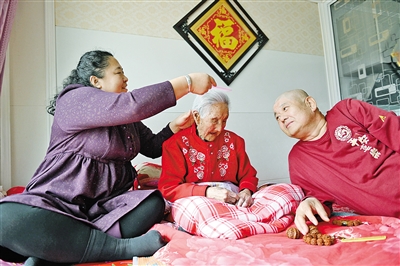 郝永平对奶奶的照顾更是细致入微。他担心窗户漏风,便用胶带仔细粘住每一条缝隙;每天下班回家,他第一件事就是跑到奶奶身边大声喊着:“奶奶,我回来啦!” 然后和她唠家常,从工作上的趣事,到路上看到的新鲜事,事无巨细。在郝永平看来,照顾老人就得把老人当成家庭的核心,让她充分参与家庭生活,这样对老人的智力与身体都大有好处。为了能更好地照料奶奶,他们将自己的生活作息完全依照奶奶的习惯来调整,在他们心中,照顾奶奶早已成为义不容辞的责任。
