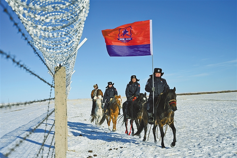 “赫力沁”巡防队的队员们策马驰骋于呼伦贝尔雪原深处的哈拉哈河岸边,在中蒙边境线巡逻、管护。