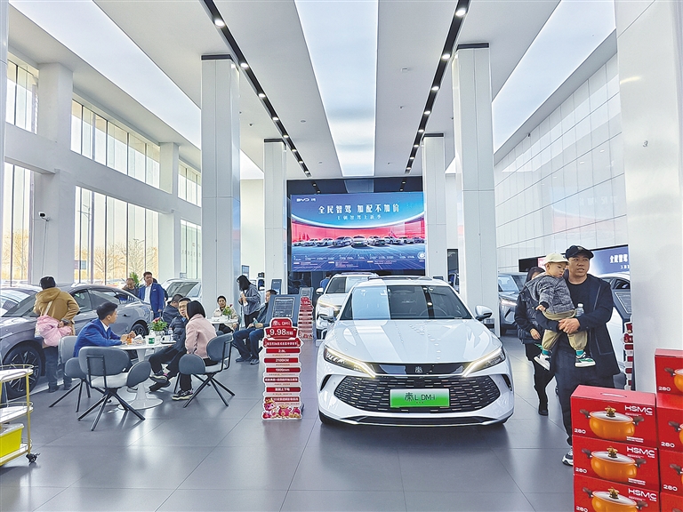 “自从去年汽车以旧换新政策出来后,我们店里的销量同比增加了60%。店里的销售人员也增加了1倍,在新一轮‘国补’政策发布后,车企也随之跟进,针对不同的车型推出了不同的优惠力度,汽车市场活力进一步被释放。”呼和浩特机场比亚迪王朝店销售经理彭飞说。