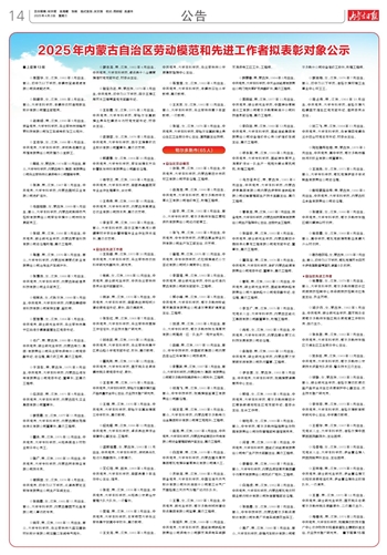 2025年内蒙古自治区劳动模范和先进工作者拟表彰对象公示