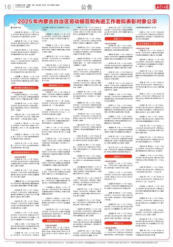 2025年内蒙古自治区劳动模范和先进工作者拟表彰对象公示
