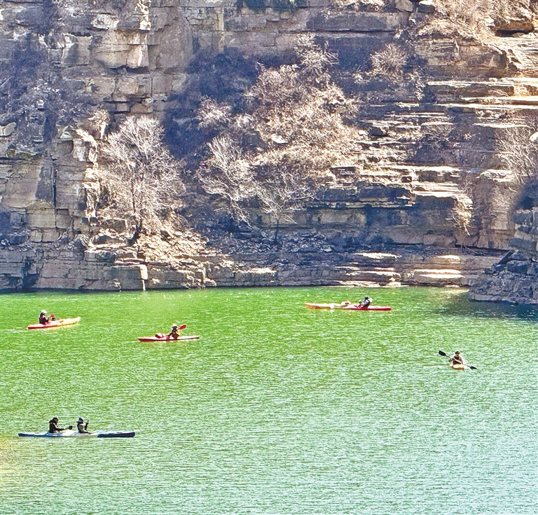 3月下旬的一次降温过程,让渐暖的春风又多了些寒意。位于呼和浩特市清水河县境内的杨家川峡谷,由陡峭崖壁、嶙峋怪石、碧绿河水组成的峡谷风情,引来众多游人观景休闲。