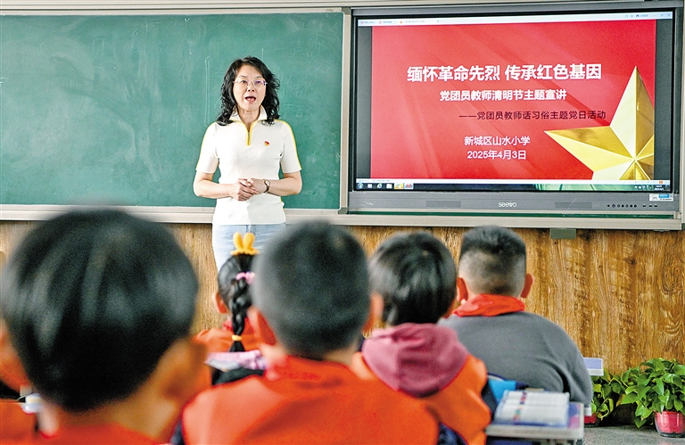 4月3日,在呼和浩特市新城区山水小学开展的“缅怀革命先烈 传承红色基因 ”我们的节日·清明节融合课堂上,文化讲解、手工创作、民俗体验等,将家国情怀、传统文化深植孩子们心中。