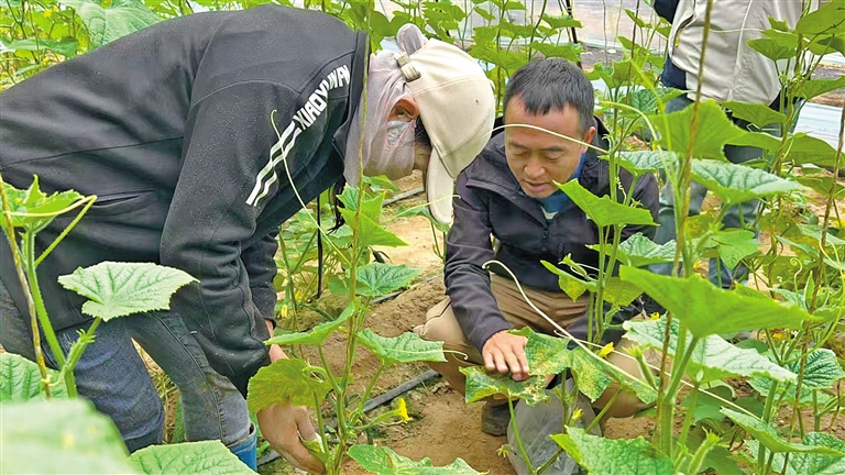 “曹特派员,这些新种苗多长时间浇一次水,对光照有要求吗?这个季节应该怎样预防蔬菜出现病害……”种植户张世权的提问,曹鹏都一一认真解答。在听到春茬西红柿田间管理技术要点时,张世权认真地记录下来,他说,通过科技特派员的指导,对增产增收更有信心了。