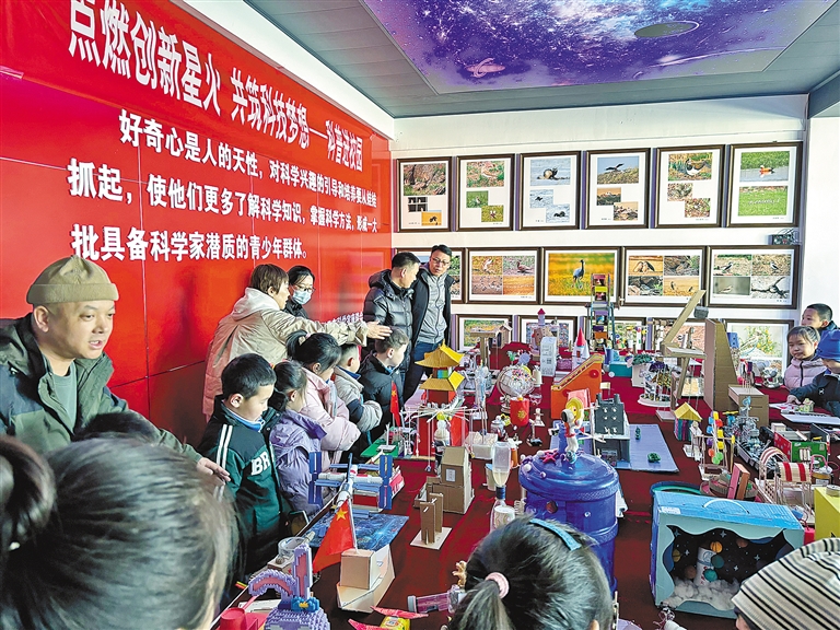 呼伦贝尔市新右旗科协近日走进新右旗第一小学开展“点燃创新星火 共筑科技梦想”科普进校园活动。活动现场,科普志愿者向同学们讲解科创作品的制作过程和操作方法,激发了青少年学习科学的浓厚兴趣。艾恒斌 摄