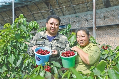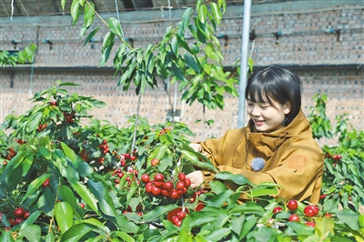 望着枝头上的累累果实,采摘园种植户王军一边帮忙采摘樱桃,一边热情地介绍,“我家樱桃销路根本不愁,半个月前就有顾客联系采摘。今年樱桃提前上市,果子甜度高,颗粒也比较大。”王军说,采摘园共有3个樱桃大棚、1200多棵樱桃树,眼下棚内樱桃陆续进入成熟期,鲜果采摘可持续至5月份,一年收入15万元左右。
