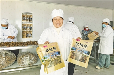 “我以前一直在家带娃,今年年初,来到公司上班,一个月能赚1000多块钱,给家里增加了一份收入,我也实现了自己的价值。”工人赵风华一边麻利地将榛菇装入包装袋,一边对记者说。
