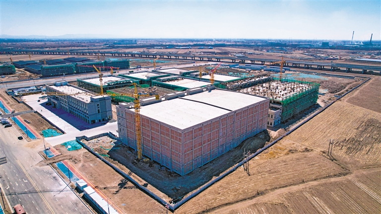 4月10日,呼和浩特国际农产品冷链物流中心施工现场一片繁忙。该中心计划总投资25亿元,总建筑面积80万平方米,分两期建设。该项目正在稳步推进中,预计今年部分设施投入运营。本报记者 王磊 摄
