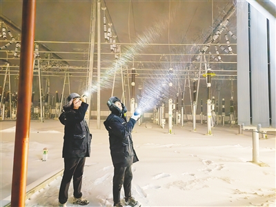 4月12日,工作人员对变电站设备进行红外测温检测。从11日开始,呼伦贝尔迎来一场大风暴雪天气过程,针对极端天气给电网运行带来的严峻挑战,国网扎兰屯输变电工区及时启动应急预案,进一步强化对变电站、输电线路的运维管理,确保设备安全稳定运行,全力保障居民和企业用电需求。 本报记者 李新军 摄