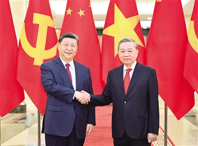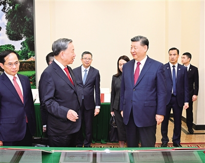 习近平强调,今年是中越建交75周年暨“中越人文交流年”。75年来,无论国际风云如何变化,双方在争取国家独立和民族解放的斗争中相互支持,在社会主义建设事业中携手并进,在推进各自现代化进程中砥砺前行,成为社会主义国家团结合作的典范。面对变乱交织的国际形势,中越两国坚持和平发展,深化友好合作,为世界带来了宝贵的稳定性和确定性。站在新的历史起点上,双方要继往开来、携手前行,赓续“越中情谊深、同志加兄弟”的传统友谊,按照政治互信更高、安全合作更实、务实合作更深、民意基础更牢、多边协调配合更紧、分歧管控解决更好的“六个更”总体目标,高质量推动全面战略合作,确保中越命运共同体建设行稳致远,为构建人类命运共同体作出新的更大贡献。