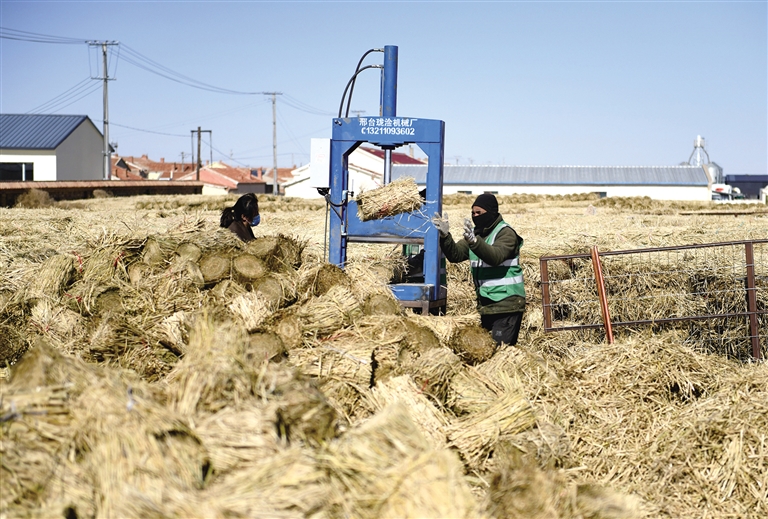 苏尼特右旗赛罕乌力吉苏木陶高图畜产品经营专业合作社内,十几台草帘编织机和自动卷帘机开足马力运转,负责人高娃和牧民们正在赶制一笔600万米稻草帘的订单。2024年,高娃主动将自家6000余亩草场申请禁牧,卖掉剩余的50头牛,将500平方米的牛棚改造成为生产车间,配备10余台草帘编织机和自动卷帘机,并与黑龙江、辽宁等地建立了长期稳定的稻草采购合作关系,2024年9月以来,完成订单700万米,实现净利润24万元。合作社不仅保障了治沙物料的供应,还带动了周边牧民增收。通过稻草帘加工,合作社吸引了60多位牧民参与,让他们实现了家门口就业,极大地提高了生活水平。