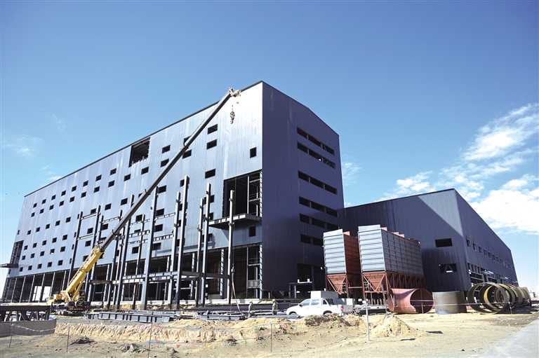 在苏尼特右旗新蒙新材料有限公司46.5万吨铁合金高质量发展循环经济项目的建设现场,工人们正紧锣密鼓地进行现场作业,大型机械设备、焊接、吊装等工作有序运行,项目建设“热引擎”开局强劲。