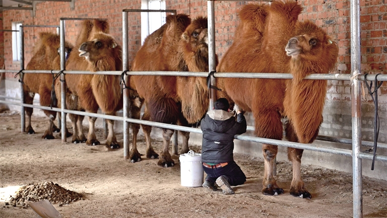 苏日嘎拉图是乌日根塔拉镇巴彦楚鲁嘎查的牧民,家中有二十多峰母骆驼。不久前,一只毛茸茸的小驼羔诞生,也为这个春天诞下了新的希望。从传统牧民到驼奶专业户,苏日嘎拉图探索出了致富的新途径。从个人购买到店铺所需,苏日嘎拉图家的驼奶销售越来越广,他还申请了自己的商标,不仅和企业合作,还通过线上线下结合的方式,拓宽增收渠道,日子越过越红火。而巴彦楚鲁嘎查的养驼大户孟克吉雅则是成立了戈壁苏尼特骆驼产业发展专业合作社,在深加工方面,不断引进先进的生产设备和技术工艺,开发出巴氏鲜驼奶、驼奶皮、驼奶豆腐等多种高品质的驼奶产品,提高了产品的附加值,带领周边群众共读致富经。