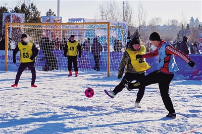 群众冰雪活动丰富多元。抽冰尜、冰上赛龙舟、雪合战等传统项目吸引了全年龄段群众的踊跃参与;亲子接力雪圈、雪地定向赛增进了家庭情感交流;雪地足球赛汇聚了各地爱好者,诠释了“越冷越热血”的精神;雪地持杖健步走则以适宜的安全性和运动强度,成为众多热爱冬日健身、渴望亲近自然的人群热衷的运动项目。