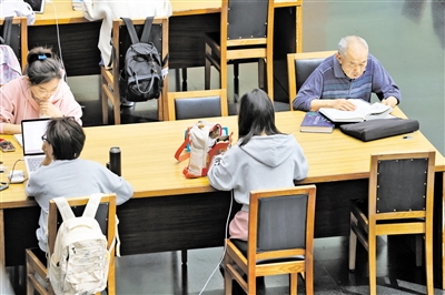 4月22日,读者在北京国家图书馆内阅读、学习。在世界读书日即将来临之际,很多读者选择与书相伴,在国家图书馆内读书、学习。 新华社记者 殷刚 摄