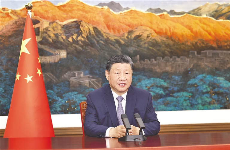 习近平强调,人与自然和谐共生是中国式现代化的鲜明特点。中国是世界绿色发展的坚定行动派、重要贡献者,自5年前我宣布碳达峰碳中和目标以来,中国构建了全球最大、发展最快的可再生能源体系,建成了全球最大、最完整的新能源产业链,贡献了全球四分之一的新增绿色面积。无论国际形势如何变化,中国积极应对气候变化的行动不会放缓,促进国际合作的努力不会减弱,推动构建人类命运共同体的实践不会停歇。中国愿同各方一道,切实履行共同但有区别的责任,各尽所能,团结协作,推动共建清洁、美丽、可持续的世界。