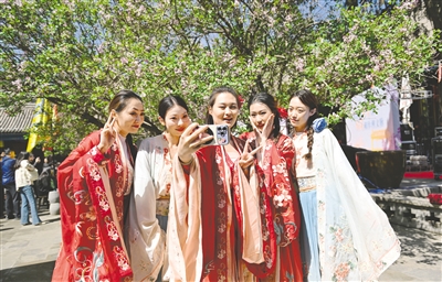 4月23日,身着汉服的博物馆讲解员和丁香花合影。当日,呼和浩特市将军衙署举办“古风韵解丁香结,衙署藏珍溯文脉”将军衙署博物馆第十一届丁香季主题活动,活动将持续至4月27日。本届丁香季主题活动依托古风场景,通过设置丰富多彩的活动内容,让游客在欣赏丁香花的同时,深入了解将军衙署的历史。本报记者 王磊 摄