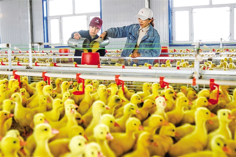 4月28日,在呼伦贝尔市阿荣旗得力其尔鄂温克族乡全顺大鹅养殖专业合作社内,村民正给鹅雏添加饲料。该合作社建有4栋标准化育雏室、2栋孵化室,并配备50台孵化箱与10台出雏器,年出栏鹅雏预计达100万只。近年来,阿荣旗深耕大鹅养殖产业,不断拓宽农民增收致富渠道,助力乡村振兴。本报记者 王晓博 摄