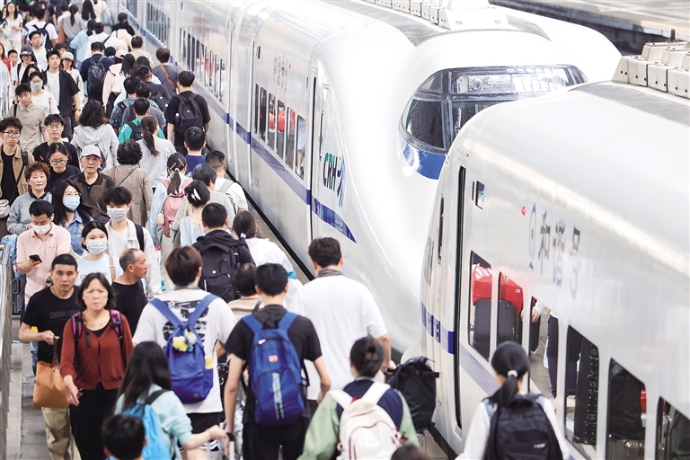 4月30日,旅客在南京火车站乘车出行。当日是“五一”假期前一天,全国铁路迎来出行高峰,预计发送旅客1870万人次,计划加开旅客列车1166列。 新华社发