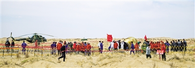 “在地面上看到开伞后,我们根据返回舱降落的线路,快速到达了落点。我们到现场的时候,直升机刚刚降落,就开始帮着一起拉警戒线了。”作为额济纳旗军地联合搜救力量摩托旅外围搜救队的一员,从神舟十二号开始,这已经是陈峰第8次志愿参加载人飞船搜救回收任务了。“我们的任务主要是对空观测,搜寻飞船返回舱的散落物,今天虽然风很大,但还是圆满地完成了搜救任务。每次参与任务后,我们也都会及时总结经验,不断改进我们搜救的速度和准确性。神舟飞船落到我们额济纳的土地上,我们都感到非常高兴,额济纳的儿女会一直守护着祖国的航天事业!”陈峰坚定地说。