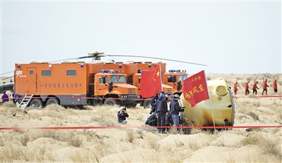 “额济纳旗是神舟起落的地方,但却是第一次落在我们嘎查!亲眼看见神舟十九号飞船返回舱降落在这片土地上,我们的内心满是震撼与自豪!今后我们将以载人航天精神为指引,为祖国的航天事业发展和嘎查的乡村振兴贡献更多的力量!”额济纳旗东风镇乌兰淖尔嘎查兼职副书记黄涛在现场激动地说。