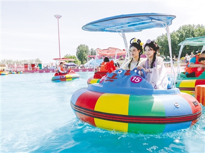5月4日,身着汉服的游客在河北省遵化市一处水上乐园游玩。正值“五一”小长假和五四青年节,不少年轻人在街巷深处感受历史与现代的交融,于市井烟火中捕捉生活的美好,在城市中探索,用“City Walk”(城市漫游)的方式度过假期。 新华社发